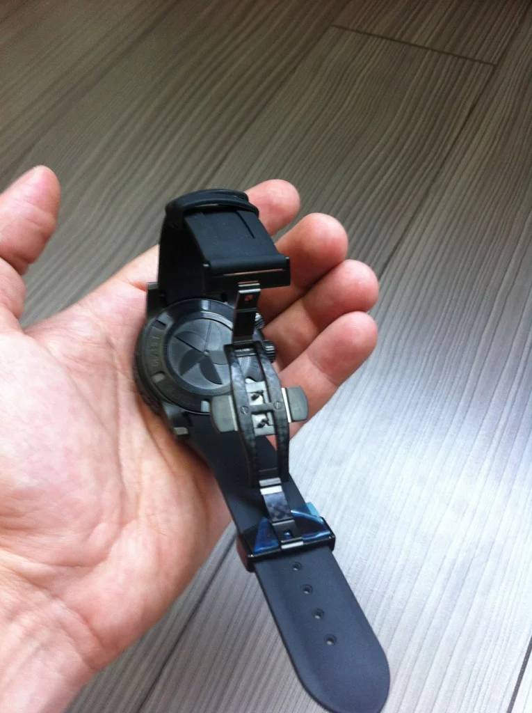 Мягкий и крепкий черный ремешок погружения резины с черное PVD покрытием нержавеющая сталь Застежка deployand.