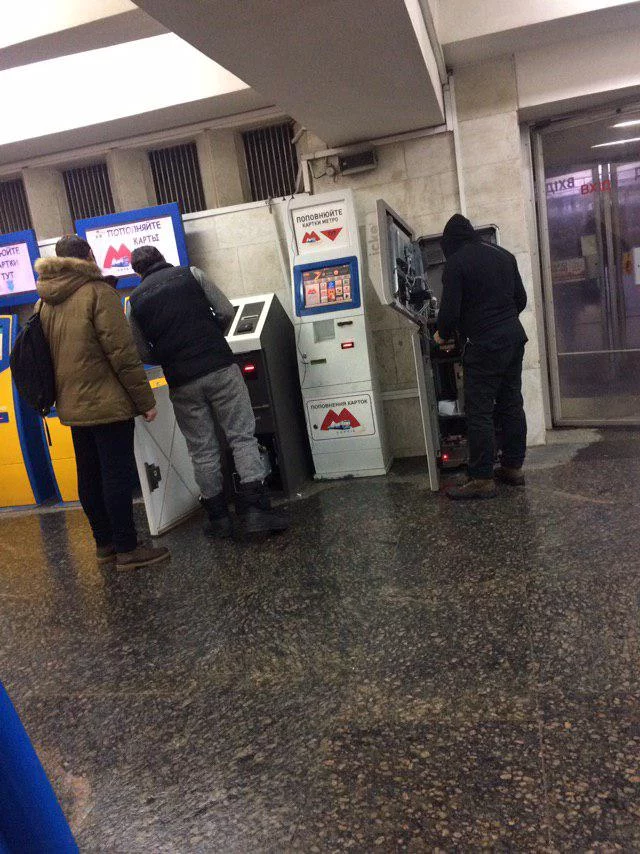 Настройщики терминала на станции метро Холодная Гора