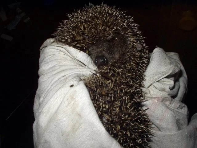 Ежи там уже живут больше 20 лет. Их кормят, поят. Они чуть ли не ручные. Всегда приносили их в дом, давали молоко и сырые яйца. Не знаю, как на счет травмы, но лопали они будь здоров.