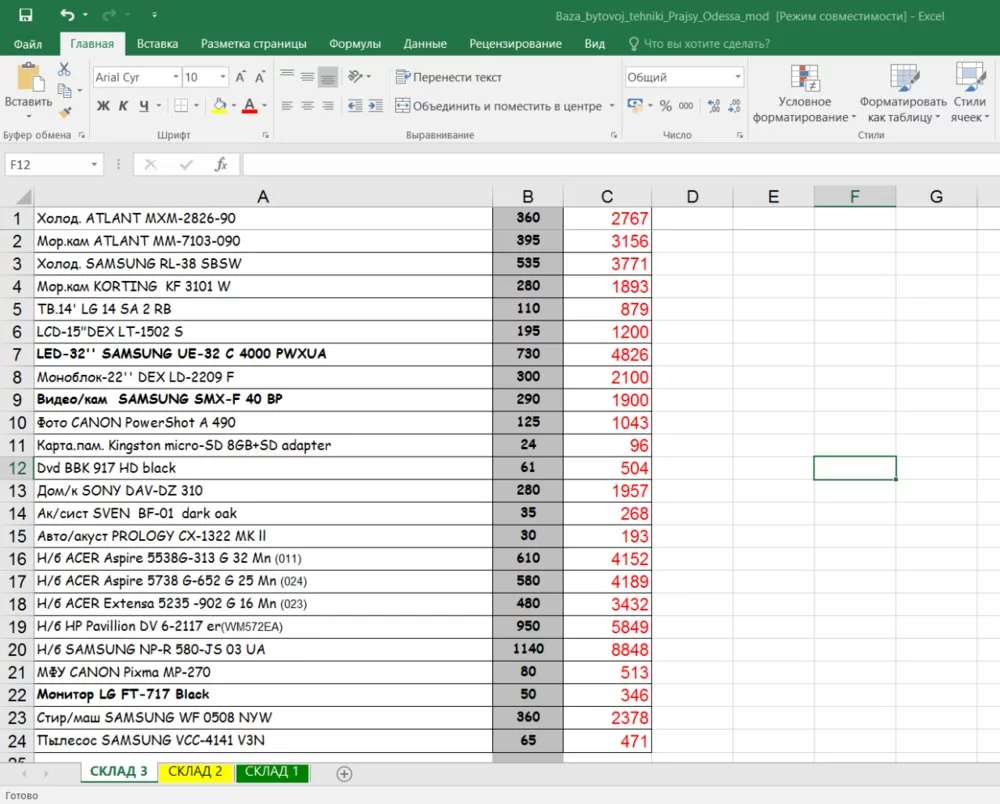 из прайса быт. техники конфиската