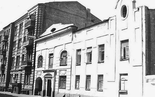 Полуразрушенное здание стояло до конца 80-х, на первом этаже работало кафе-автомат, я туда любил заходить перекусить бутерами с ветчиной (15 коп.) и мороженым со сливками (61 коп.). :)