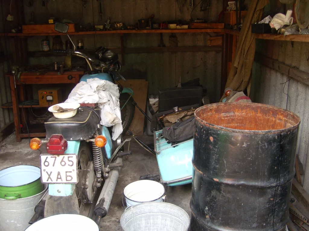 в силу всемозможных причин - не имел возможности прокатится на своем коняке уже 1 год:(:(:( сегодня удалось побывать в том месте где он хранится(100км от харькова) и лицезреть его, но прокатится опять же неудалось - нима бенза.....ближайшая азс в 15км. заядя в гараж с трудом удалось найти его под кучей хлама и килограмма пыли. но вот вскоре отпуск и я займуся им и его перевзкой в харьков))