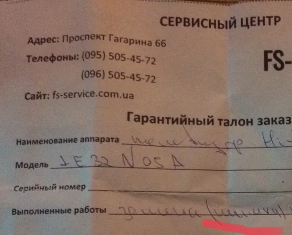 А теперь по сути, телевизор у меня постоянно через раз включался и с этой проблемой я его им и принёс, после диагностики сказали что нужно менять шим контроллер(шимку), ждали запчасть неделю, и после того как я забрал телевизор и хотел забрать свою деталь - мне по телефону девочка оператор представившаяся руководителем (она же и приемщица, она же и оператор ??) начала хамить и вешать лапшу на уши что меняли якобы только кнопку и не о каких шим контроллерах речи не шло. На мои слова что именно шим контроллер мы ждали неделю и ею же от руки написано что менялся шим контроллер под кнопкой включения в ГАРАНТИЙНОМ талоне, бросила трубку! Заплатив деньги этим аферистам, привёз домой и утром включив обнаружил что он как не включался так и не включается! Отнёс в другой сервис где мне показали что никакого шим контроллера не менялось а вернее его там просто НЕТ! а они тупо выпаяли мою кнопку включения и поставили БУшную кнопку!!! Вот и весь их ‘недоремонт’ с ‘диагностикой’ недельной протяженности. Не удивлюсь что эти умельцы выпаяли мои запчасти с телевизора и поставили дешевое Бу ****о!