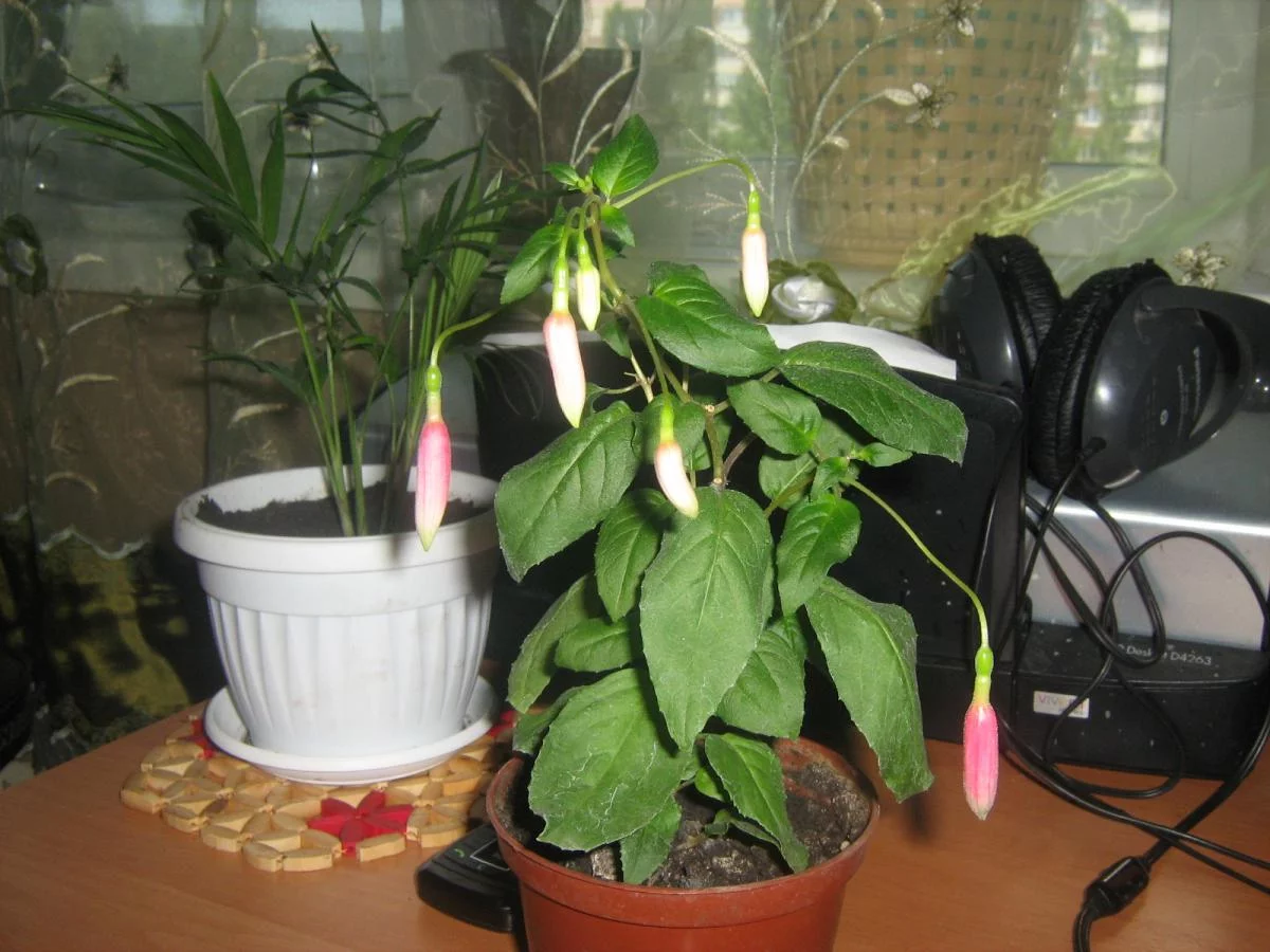 Это кустовой сорт, просто на фото попали ветки и листики других фуксий.Прикольная
