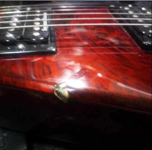 "EVO" ударялась столько раз, что ее корпус треснул практически по всей длине. Мастера с Ibanez приложили все усилия, починить инструмент, но трещина проходит через весь корпус, и гитара держит строй все хуже и хуже. К сожалению, исправить это невозможно, и "EVO" становится все более ненадежной в плане строя, а гриф постоянно болтается.