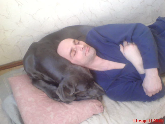 У Вас не галюцинации.это муж на подстилке собачек лежит