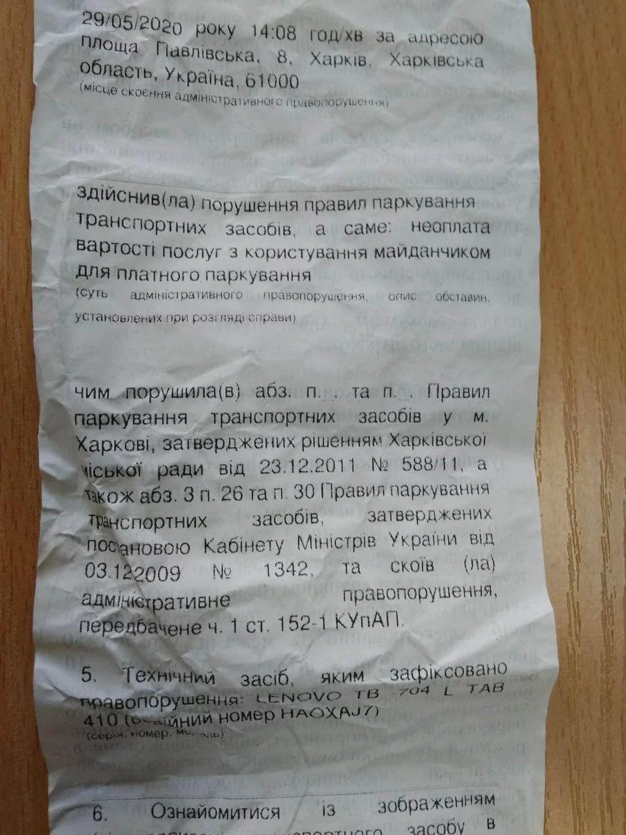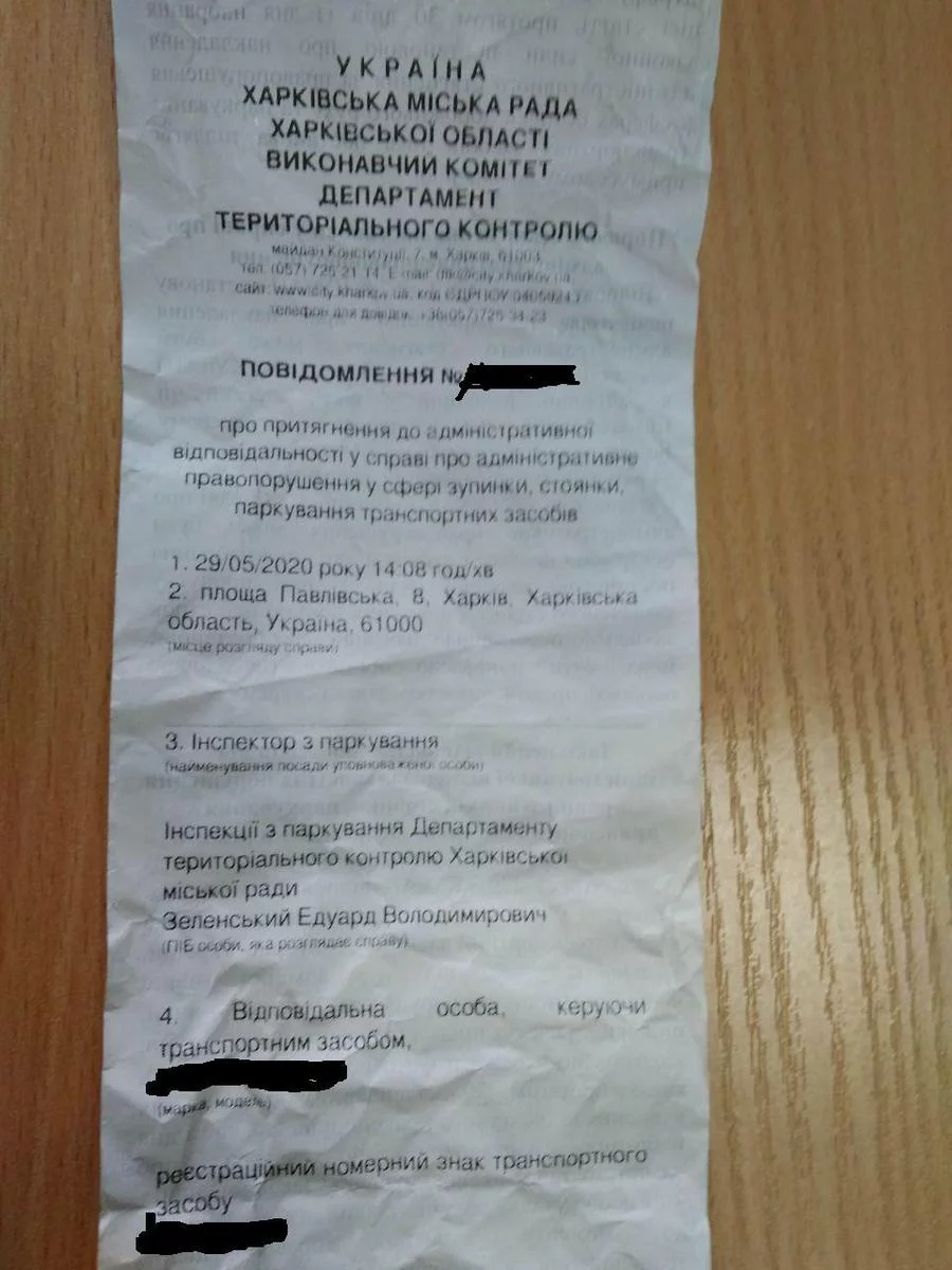 Сегодня припарковался на Павловской площади, на стоянке на той стороне, где была "Мелодия". Отсутствовал минут 15, вернувшись, обнаружил под стеклом бумажку, в которой сообщалось, что я нарушил правила платной парковки и должен заплатить штраф 100 грн. Излишне и говорить, что в момент, когда я парковался, никаких парковщиков рядом не было. Нашел группу чуваков в синей форме, на которой было написано "Iнспекцiя з паркування", бродивших рядом, попросил их объяснить, почему ко мне не подошли и не попросили заплатить, они посоветовали читать постановление. Один из них показал удостоверение на имя Гудилина Романа Владимировича (№3310, подписано Кернесом, сфотографировать его чувак не дал). Потом обнаружил фамилию того, кто мне выписал постановление, она "говорящая" (может, сын?). Вот, размышляю, хорошо ли организована парковка в центре?