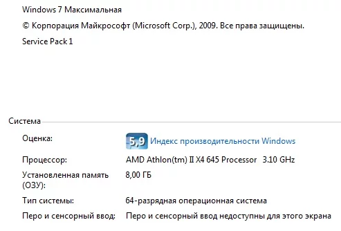 Параметры компа: