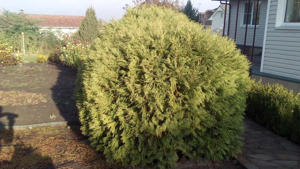 Голубая ель, туя шарик