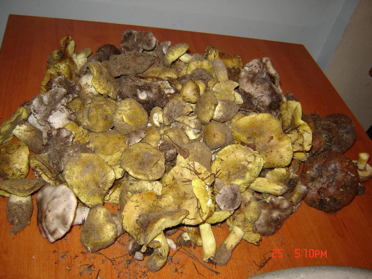 Сегодня проезжал Изюм, останавливался на грибном базаре. Из свежих грибов на продаже: маслята (50%), зеленушки (15%), опята (10%), польские не молодые (10%) и рядовки (15%). Проезжал в 9,40.