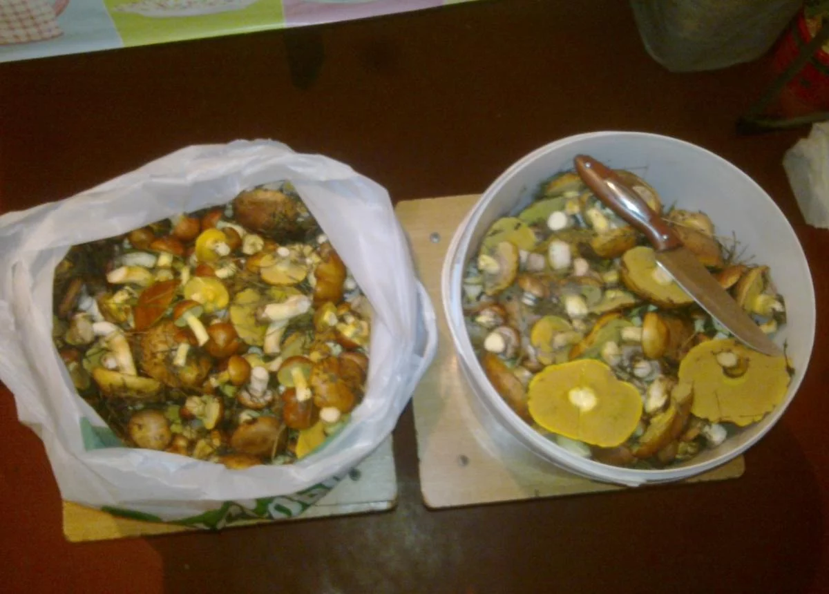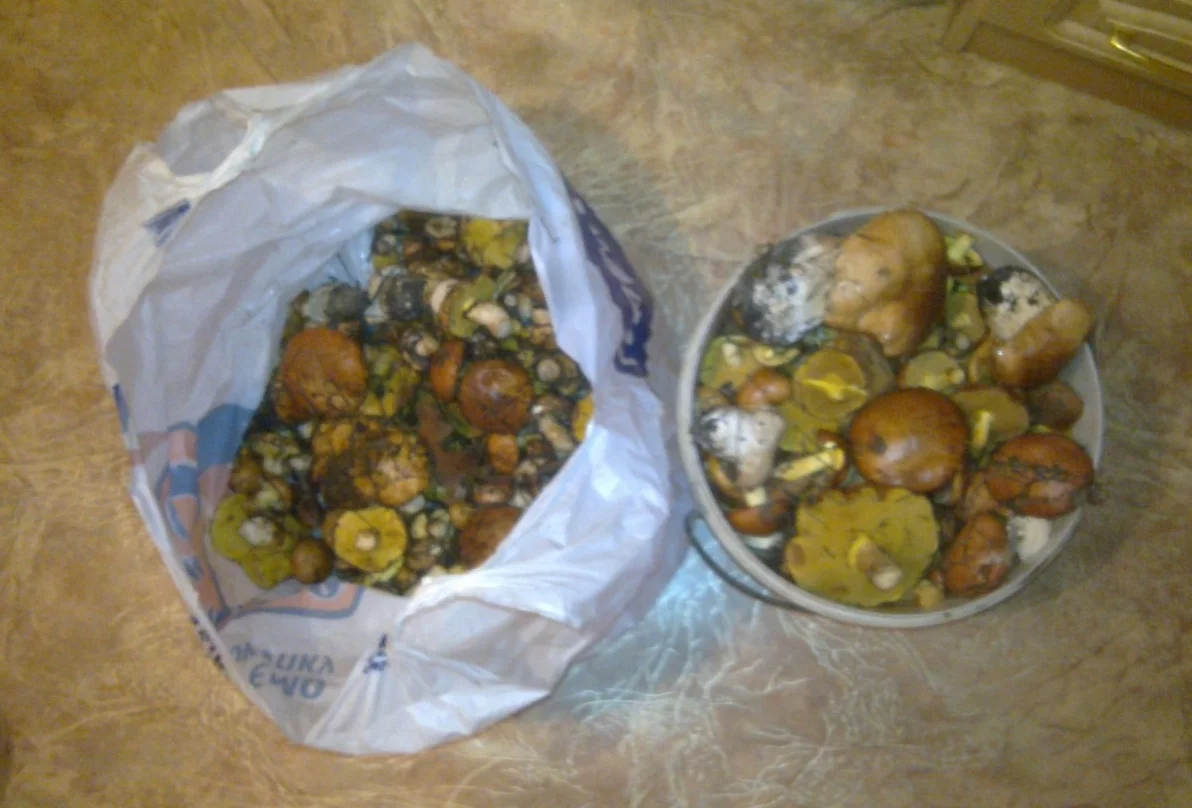 Приехал вчера с Купянска ездил к теще, думал заскачу на часок в лес осмотрюсь и обратно, на всякий случай взял ведро и пакет, проходил часа 4 набрал и ведро и пакет хороших маслят, остался у тещи т. к. было позно и нужно было что то делать с грибами, думаю рано утром рвану в Харьков, но уж больно хотелось заскочит в лес и найти белые т. к. месные знают места и маслята почти не собирают а несут белые. Пока искал белые проколесил еще часов 7, насобирал ведро и полный пакет маслят, но белые так и не попались и лишь возвращаясь нашел семейку белых которым больше обрадовался чем всему урожаю. Итог 4 ведра маслят и немного белых.