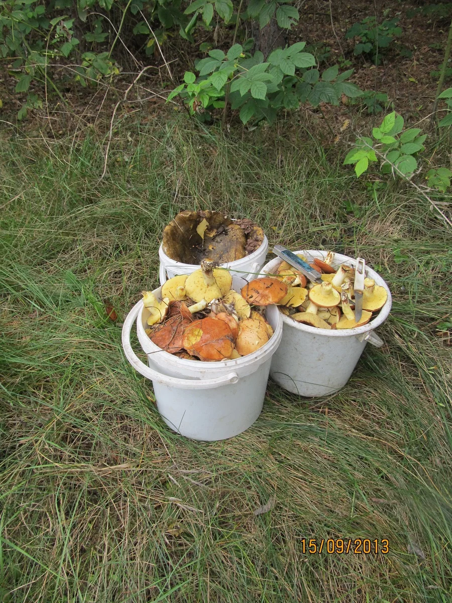 собрали 2 маленьких ведерка маслят (избегали маслят, как могли, не хотелось всю ночь чистить, но других грибов было мало...) и маленькое ведерко черных груздей :)