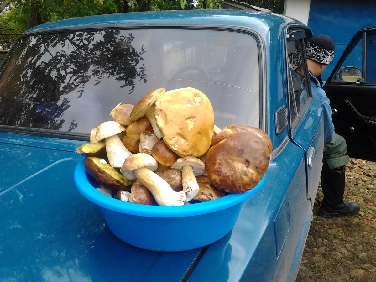 Сегодня опять ездили за грибочками...но у нас скорее прогулка по лесу была. Мы аж в час дня приехали. Нам достались крохи)) Зато рыжиков на сковородочку нашли. Чуток белых и польских.