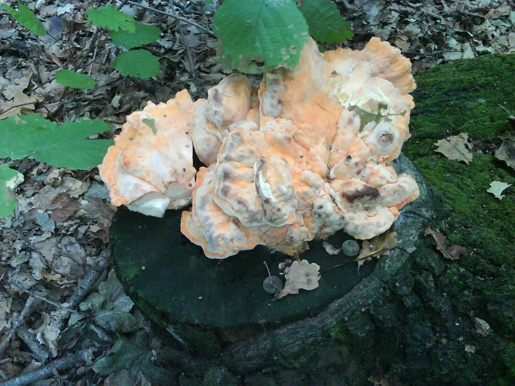 Очень похож на печеночник, хотя я ни разу не видел их растущими из земли, все время или на пнях или деревьях, чаще всего на дубах. .