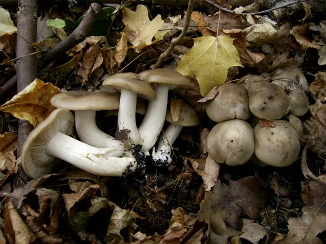 Ходили за грибами, много рядовки набрали серой, лиловоногой, фиолетовой (которая кстати и после отваривания фиолетовая), попадались рыжики, даже семья подберезовиков и даже молоденькие маслятки! А вот что росло в смешанном лесу хотим выяснить. Помогите определить.
