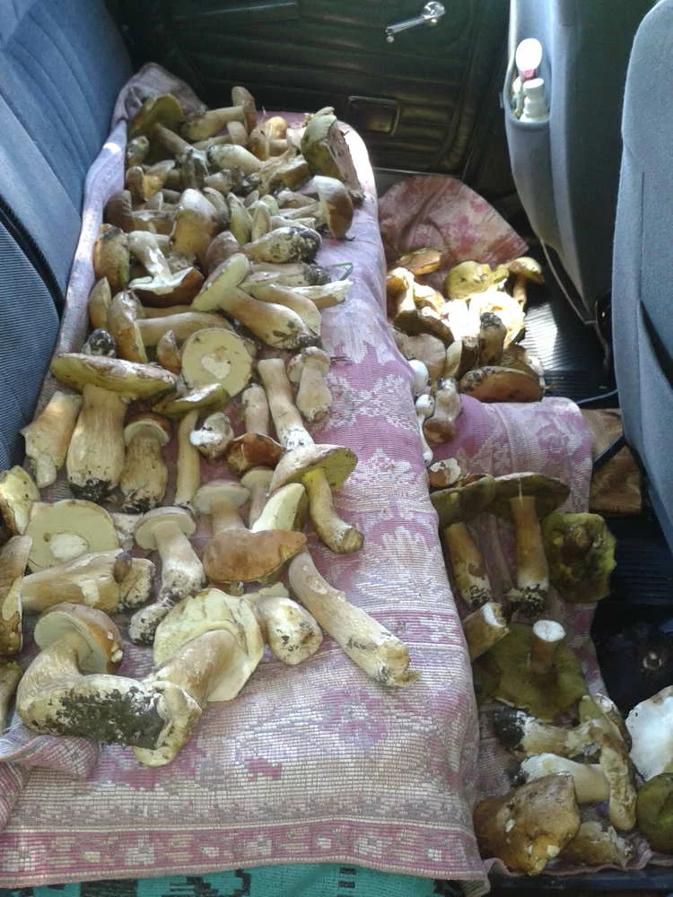 Набрала мало. Белый уверенно идет, но много червивых. Рядом со мной ехала пожилая пара с ведром отменных белых и польских + с шикарным королевским белым. У других пассажиров не так много, в основном польские, чуть-чуть рыжиков.