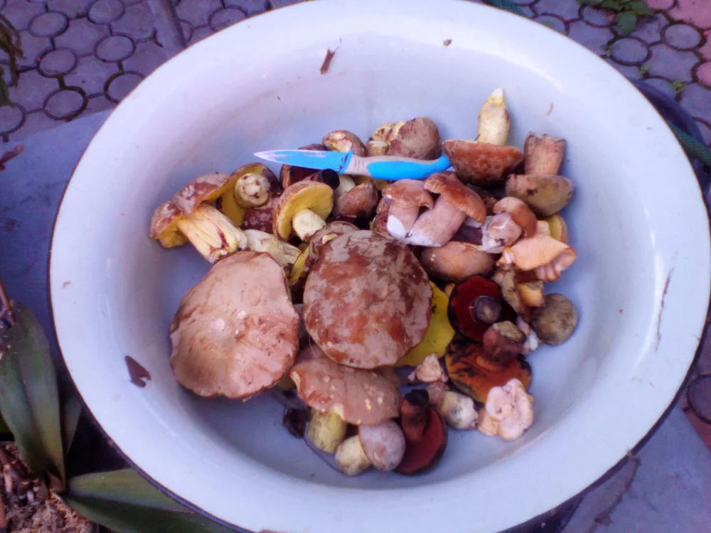 результат моего сегодняшнего похода в окрестностях Мерефы.Немножко белых,чуть больше полубелых,дубовики ,подосиновики разного окраса ,маслята и совсем чуток моховиков