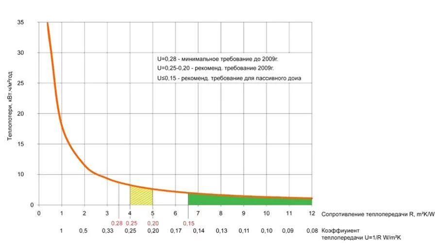 Интересный график, получается для пассивного дома необходимо чуть меньше 300 мм пенопласта по кругу, без учета потерь через окна-двери и вентиляцию.