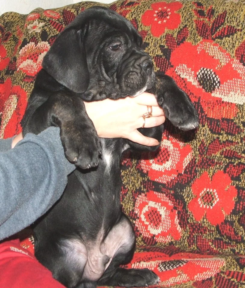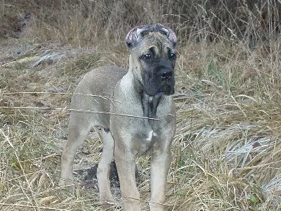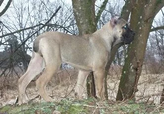 Окрас у него в самом деле удивительный... под разным освешением разный оттенок от серо-бежевого до розоватого. Это цвет Форментино кьяро грей... Сейчас ему уже 6 мес и весит он почти под 40 кг, кажется он не много худоват, но костяк мощный. Занимается на площадке с 3х мес и уже много чего знает. Хозяйка расказывает что даже тренер удивляется как быстро он все усваивает.