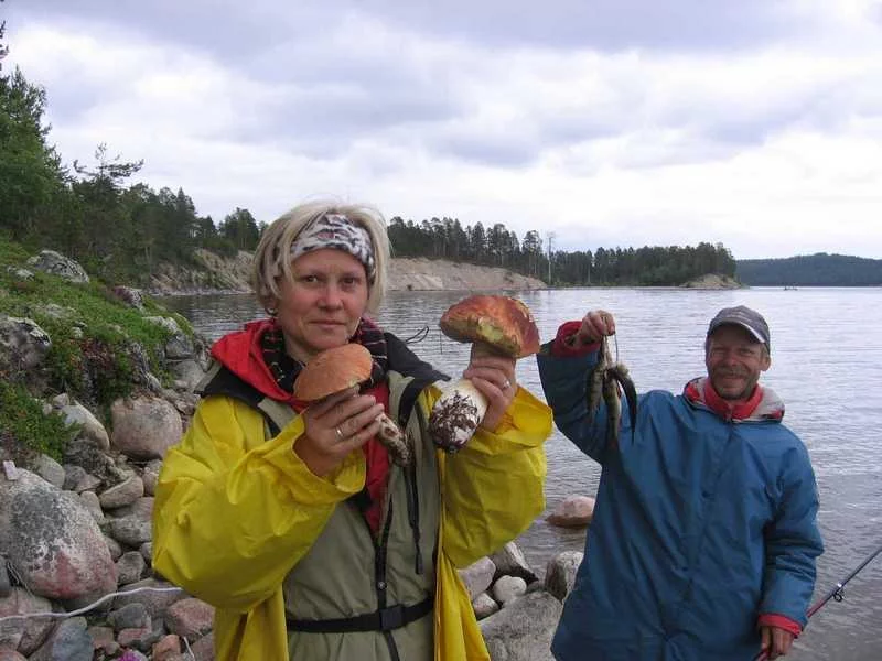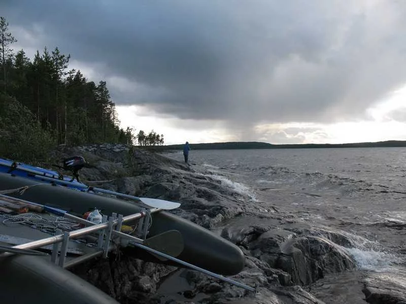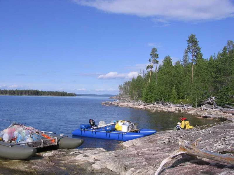 Вот и опять меня занесло в этом году порыбачить не на юга )). В этот раз выбрался в Карелию, на Пяозеро. Поездка удалась. Наловили рыбы (щука, окунь, хариус), наелись и намариновали грибов, наварили варенья из черники. Как и в прошлом году сплавлялись на катамаранах, двумя командами. Всего 9 человек. В этом году не было мошек, что не могло не радовать, за то в избытке было комаров. Погодка непорадовала, если честно. Три дня простояли на одном месте, т.к. не могли спуститься на воду, сильно штормило. Пару раз жировали - жарили пирожки, делали торты, в общем развлекались как могли. Во всем остальном, обычная походная жизнь )). Сразу извиняюсь, не сортирую фотографии, так как много очень. Закидываю пачками.