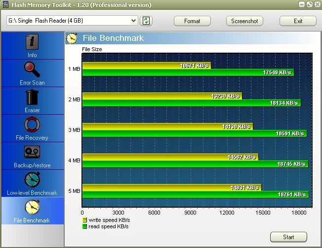 И еще: Скорость карточки зависит от размера кластера. Если форматировать, допустим в FAT32 с кластером в 32 КБ, то такая флэшка будет быстрее, чем если её-же отформатировать с кластером в 4 КБ. Возможно еще и это повлияло на результат теста с сандиском выше.