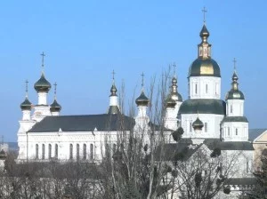 - Потом идут три маленьких купола Озерянской церкви, что в Покровском монастыре (бывший исторический музей, архив).