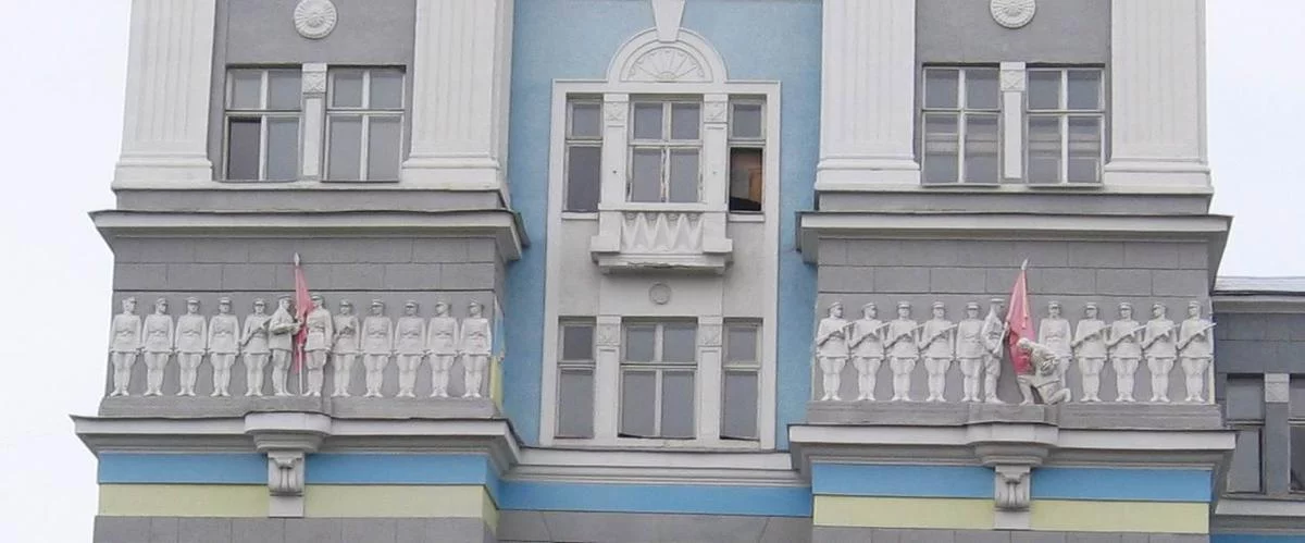 Снимал неск.лет назад, сейчас в связи с декоммунизацией красные флаги забелили.