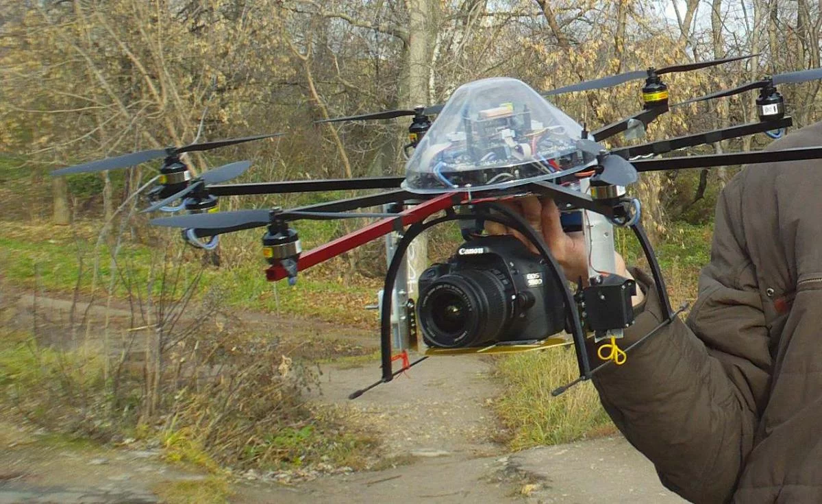 Вы и самолеты делали сами или только навесное фотооборудование? И какую камеру поднимает самолет? Насколько эффективно использовать вертолеты, много ли проблем со стабилизацией?