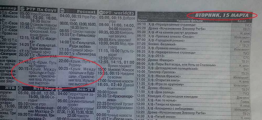 В руки попала программка харьковских кабельных и спутниковых телеканалов. С кабельным понятно - *****ские каналы выпилили. Со спутником сложнее - каналы так просто не выпилишь. Но, блджад, печатать в украинской газете программу спутниковых российских каналов!!! С пропагандистским крымнашевским репертуаром!!!