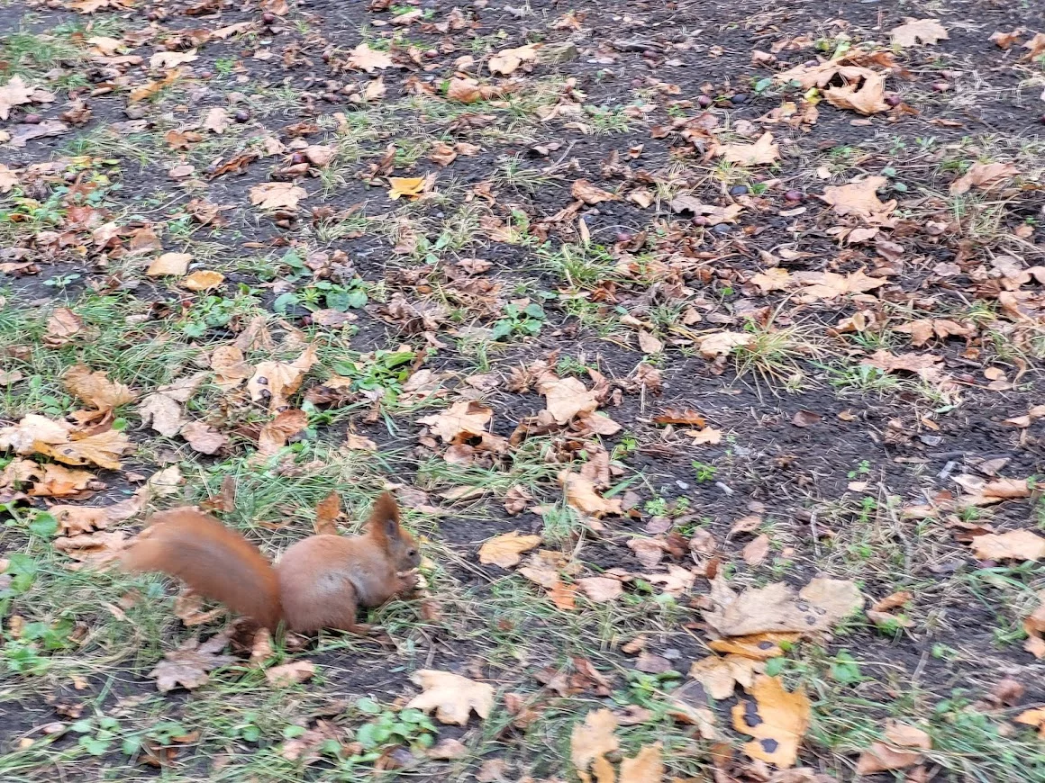 Сегодня заметил белку. У меня было два ореха. Я подошел и постучал орех об орех, чем привлек внимание белки. Тому, что случилось дальше, я бы не поверил, если бы не увидел сам. А может бы и поверил. Короче. Белка в пасти держала желудь. Я ей кинул два ореха подряд, и они кучненько остановились возле белки. Белка подбежала к орехам. Но в пасти же у нее желудь. Белка секунду поглядела на орехи. А затем метеором съеблась в ближайшие кусты. Через секунд 20 выскочила из кустов уже без желудя. Подбежала к ореху. Взяла его в зубы и также быстро съеблась в сторону, противоположной кустам. Я развернулся и пошел прочь, зная, что она вернется за вторым орехом во что бы то ни сталоседня возле реки на заводе шевченко тоже видел белку, тоже ныкала орех. Интересно откуда она его несла...