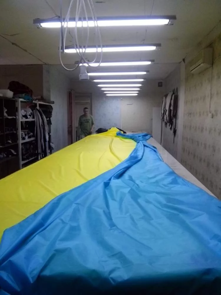От ребят поступил необычный заказ – флаг оооочень большого размера. Для его пошива было куплено 20 м ткани. Огромная благодарность Vadim Litvinenko и Наташе за помощь в реализации идеи! При покупке ткани совершенно незнакомый тогда человек передал 200 грн. Igor Cherniavsky Игорь! Благодарна Вам за доверие. Вы не знали ни меня, ни обо мне и просто так дали деньги. Тронута. (Тоже пойдут на расходы по топливу в эту поездку)