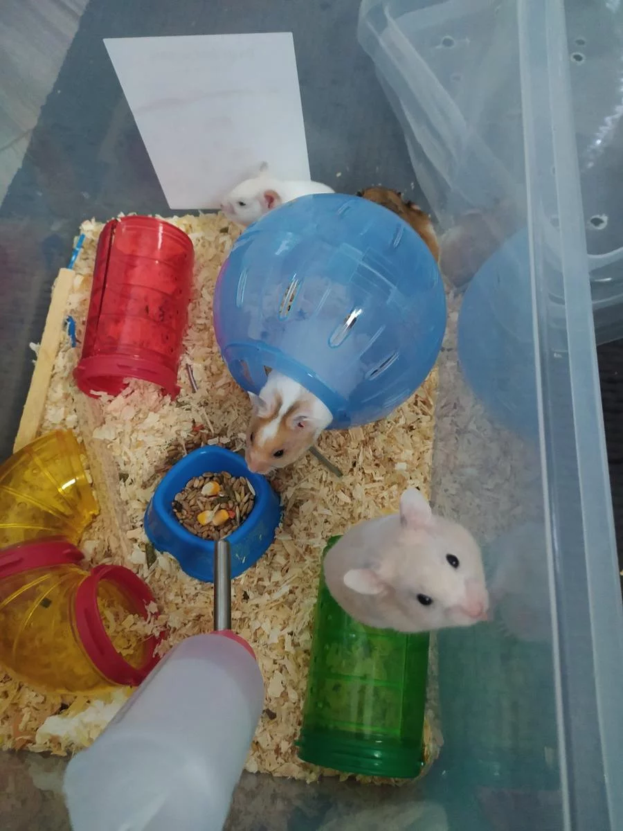 Добрый вечер, раздам 6 хомяков, 2 девочки и 4 мальчика. 1 мес от роду. В основном беленькие с кремом, с рыжим, и 1 темно коричневый. Если завтра не заберете, отдам на рынок - жалко, но всех не приютишь.