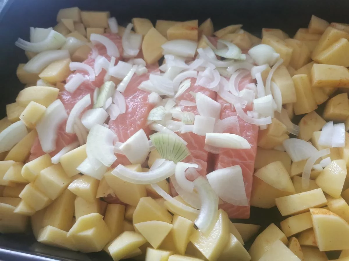 лаксик в сопровождении картофеля отправляется в духовку. на запекание.