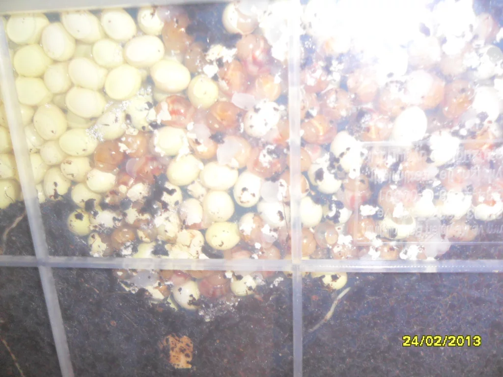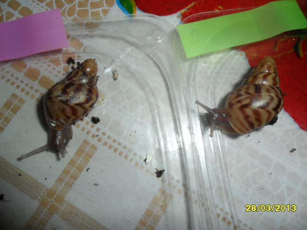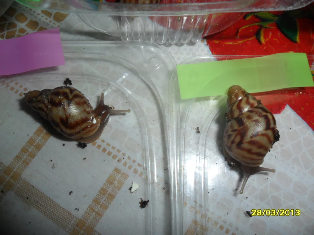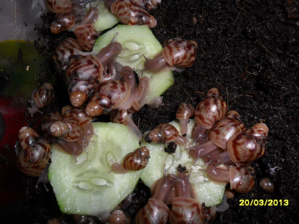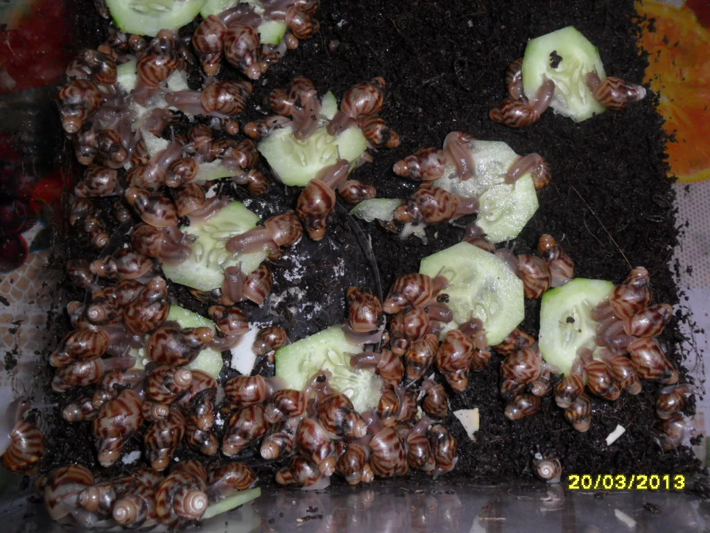 Думаю,что перекормить улитку невозможно,можно только дать не полезную для них пищу.С творогом - наверное нужно по аккуратнее,все-таки это не их природная пища.Хотя...гаммарус и сепия(водные обитатели),так же не могут встретится на пути африканской улитки в природе))),но видимо они заменяют их наверно какими-то скорлупками яиц птичек,ящерок.Вот наблюдаю сейчас за своими малышами-так они свои скорлупки подчистую съели.Что буду делать с ними -пока любуемся всем семейством,сын уже "приучает к рукам" фото прилагается).Как подрастут-буду продавать,несколько моих друзей уже с нетерпением ждут,когда можно будет забрать обещанных.Ну вообщем,думаю малыши будут пристроены все)))