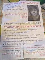 На ваши звонки, после мелодичных рингтонов, отвечают не голливудские актеры, а подозрительные русскоязычные мужчины и женщины, которые не сразу понимают о чем речь. После простого начального вопроса: «Как вас зовут?», эти граждане могут сказать совсем другое имя, чем указанное в объявлении. Отмечу, что иногда уже именно имя в объявлении*красноречиво: напримеру, на одном из них имя Аркадий, которое ну очень «популярно» во Львове. Это может свидетельствовать о том, что это – схема, которую просто копируют и расклеивают по городам, не вникая в детали. Во время телефонного разговора, эти лица пытаются напроситься к вам в гости и готовы хоть уже прибежать и «починить» ваш компьютер или ноутбук. Если вы спросите, можно к ним принести свою технику, то они скажут, что такого места нет и что работают они частно... у вас дома.