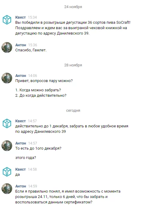 (скрин если удалят приложен), где я выиграл дегустацию пива.