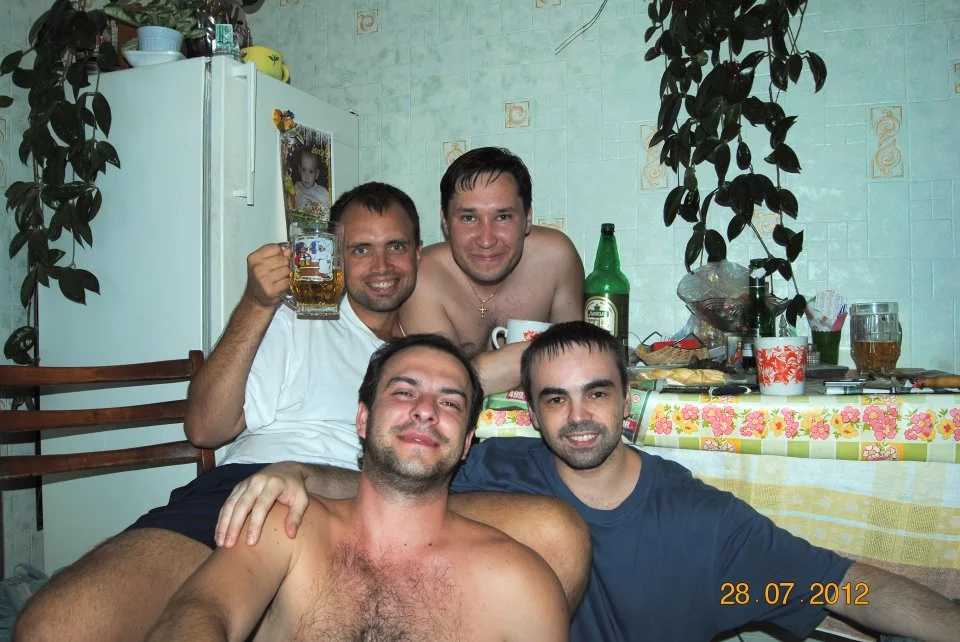 А пьют-то не "Балтику", а "Львивське"... )))))Но, да, собсно страничко у него блещет прям колорадством. Вот он с друзьями.