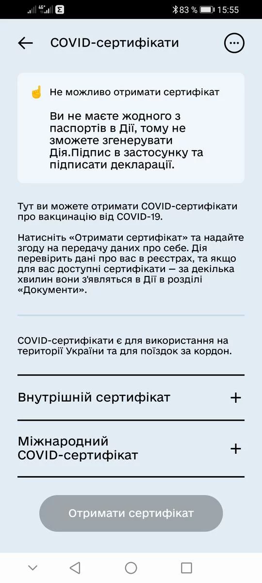 хрен там! в "Дие" он появится автоматически, как только семейный врач у себя нажмет кнопочку генерации сертификата... до этого момента вакцинация в базе зафиксирована, но без отметки семейного врача в "Дию" эта информация не подтягиваетсяКстати, сертификат в Дие можно получить только если есть загран или паспорт-карточка.