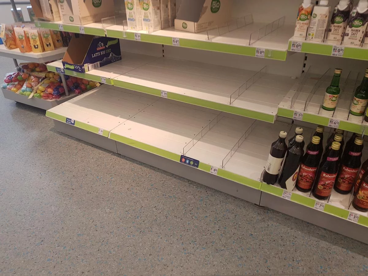 Немцы решили помирать с чистыми руками и жопой. Фото полок с мылом и туалетной бумагой.