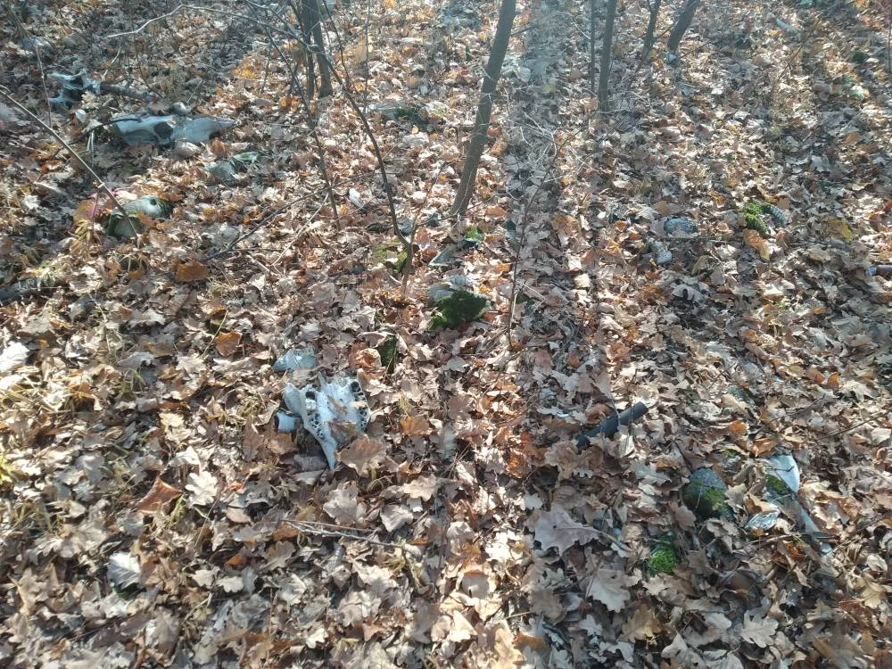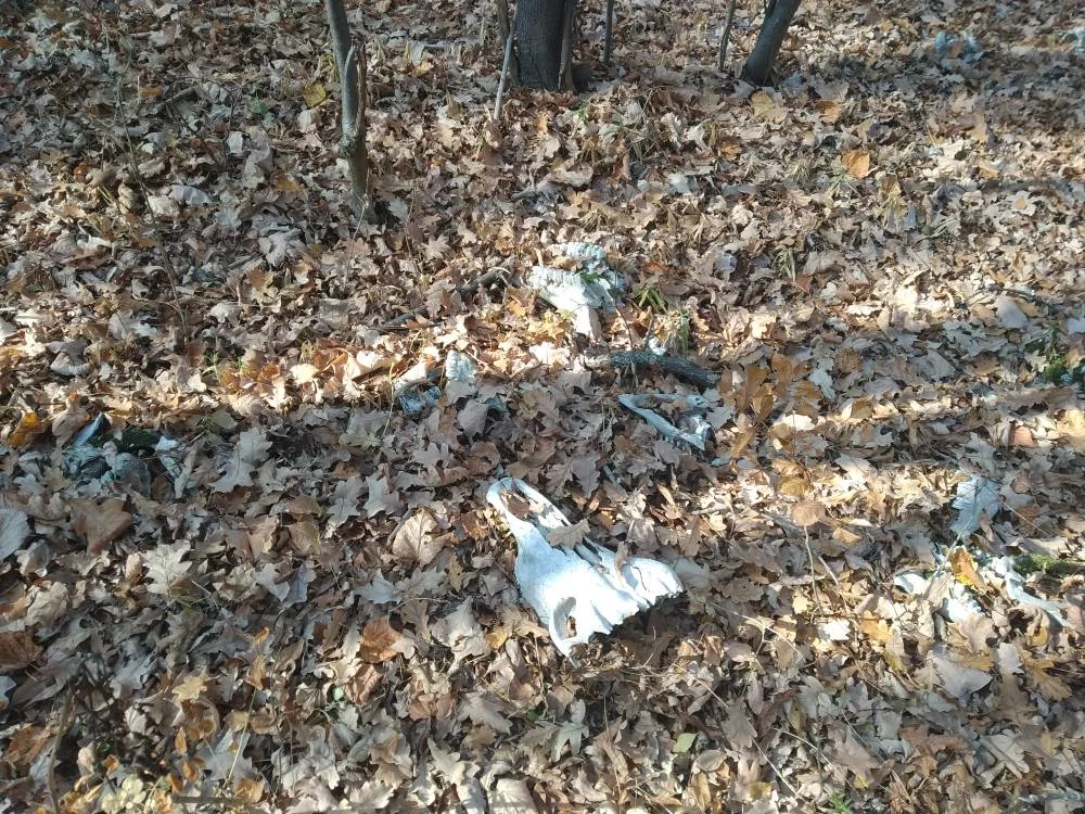 Приехали прогуляться с ребенком по лесу в Залютино возле гериатрического санатория. Свернули видимо не на ту тропу и обнаружили останки костей крупного рогатого скота разбросанного вдоль дорожки. Из останков в основном черепа и челюсти, наверное около 30-40 голов, считать не стал. Останки на вид довольно старые и растасканые животными.