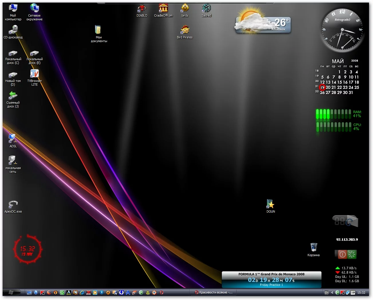 Я вот столкнулся с программами Lclock и Chameleon Clock 3.50.3 Rus, иконки вистовские VistaDriveIcon.. Потом есть такая прога делает как у мака внизу экрана на рабочем столе иконки.. Вот было бы интересно такую поставить.. WinFlip хорошая штучка.. Может, кто еще знает какие интересные штучки. Поделитесь.. Ага.. по громкости есть такая фишка.. В общем, в этом духе хотелось бы побаловаться.. Кто что видел, у кого что есть..