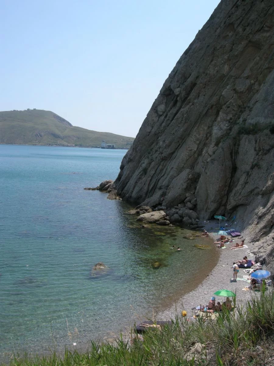 Я отдыхал в Курортном, ездили в Орджоникидзе как на экскурсию, в поселке припарковатся не получилось, проехали дальше там дикий пляж (на фото), прошлись пофотались и назад, так как в Орджоникидзе смотреть больше особо нечего, даже набережной нет, ведь это рабочий поселок, там на мысе был подземный военный завод, где оснавная масса населения и работала.