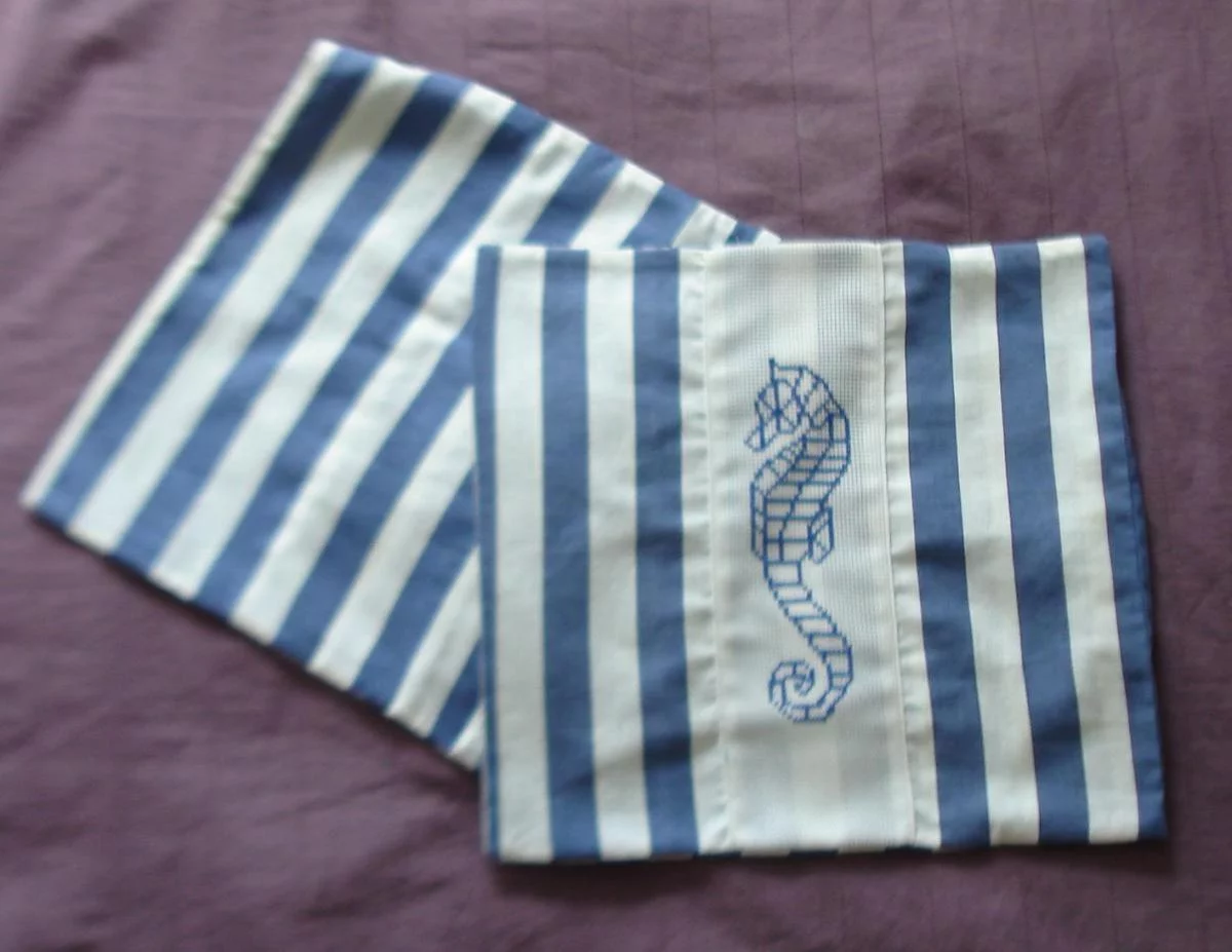 И еще наволочки с вышивкой "морской конёк" - прекрасный аксессуар для летней веранды! размер 37 х 35 см.