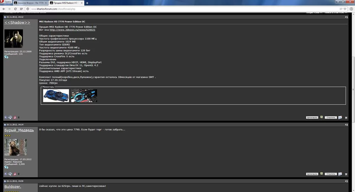 Купил у него карту 7770 без проверки, так как он сказал что комп распродал, привез домой(ехал 20 минут), проверяю СЫПЕТ (в винде не сыпет, только при нагрузке, причем дрова и все сопутствующие обновлено, ***..-ь даже винду преустановил за ночь, итог тот же) звоню ****у- говорит я ни я карта была исправная, возвращать деньги не буду.