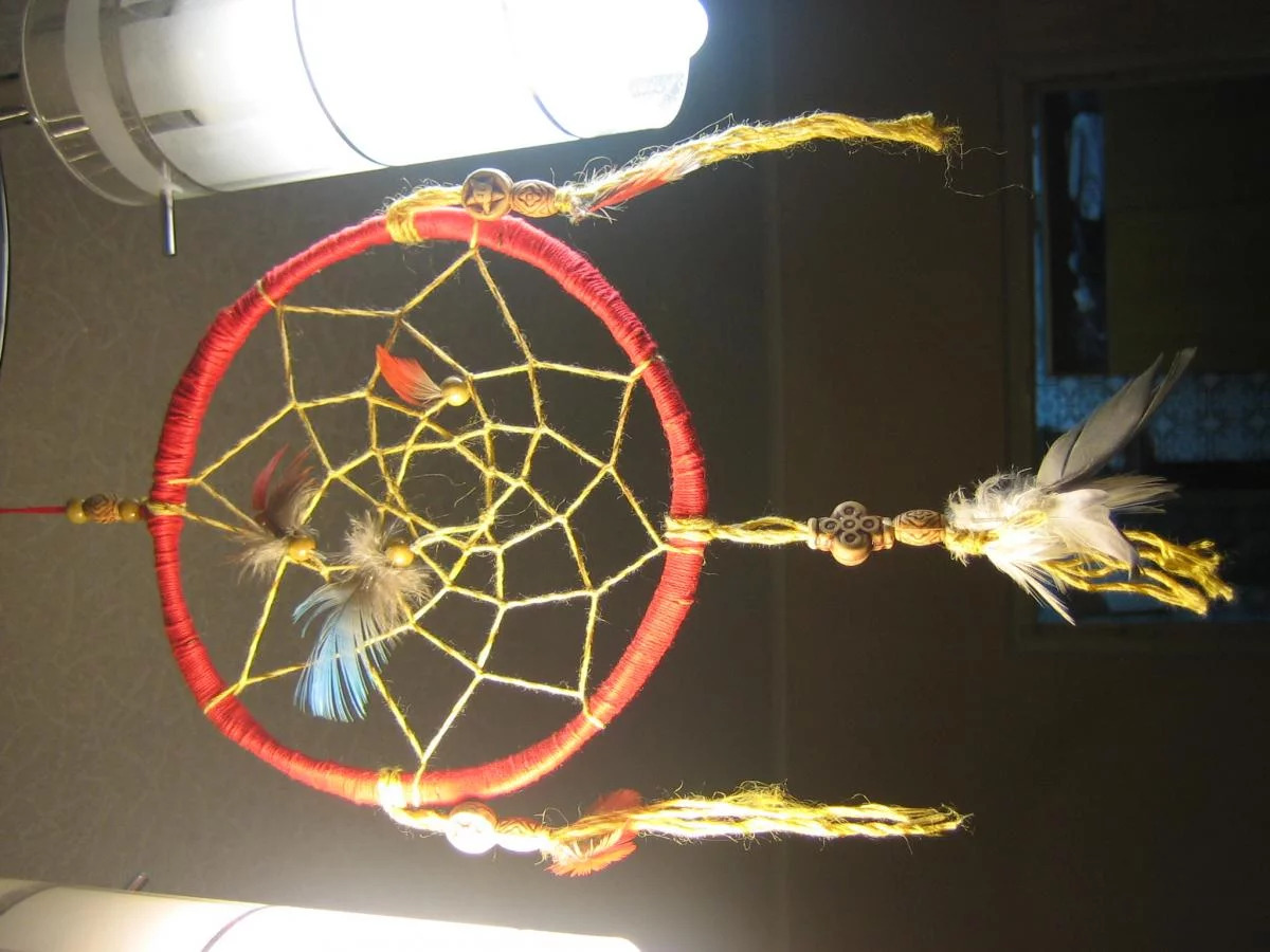 Ловец снов (англ. dreamcatcher; dream catcher; оджибве asabikeshiinh, неодушевлённая форма слова ‘паук’[1][2] или bawaajige nagwaagan ‘ловушка снов’[2]) — индейский талисман, защищает спящего от злых духов. Плохие сны запутываются в паутине, а хорошие проскальзывают сквозь отверстие в середине. Представляет собой паутину из суровых ниток и оленьих жил, натянутых на круг из ивовой ветви; также на нитке вплетают несколько перьев. Вешают над изголовьем спящего. Такой амулет можно сделать своими руками или купить в сувенирной лавке.