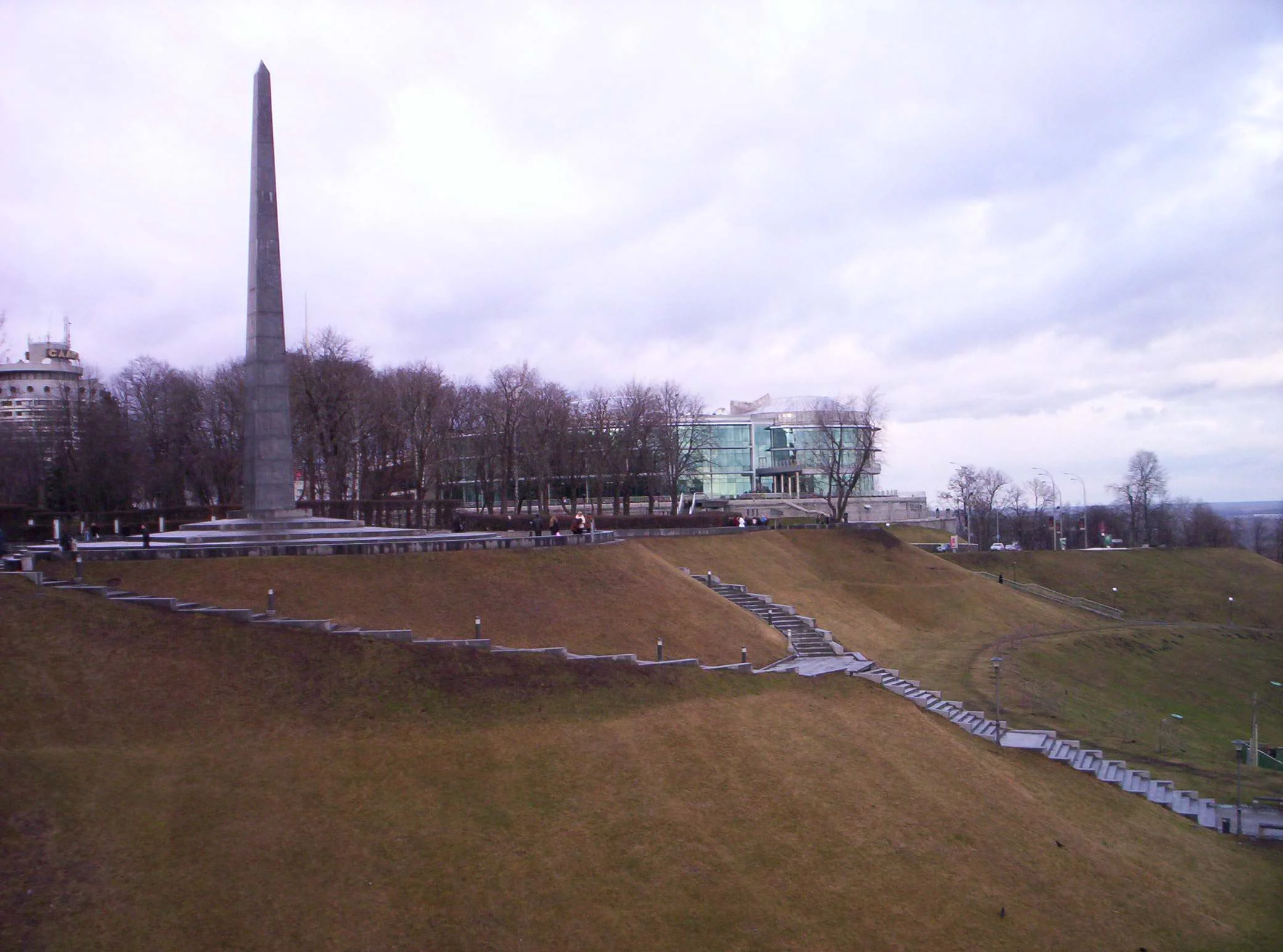 11-памятник Славы героям отечественной войны (вид с тыла, если так можно сказать) Стеклянное здание - это уже современная пристройка, а когдато в этом здании находился областной дворец пионеров.