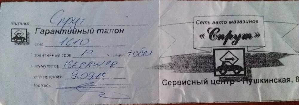 Ровно 2 года назад, по совету друзей, заехал я в этот магазин купить новый аккумулятор для автомобиля. Парень, торгующий аккумуляторами (АКБ), предложил мне "хороший вариант". Сказал, что весч очень качественная, что завод даёт на них гарантию 5 лет.