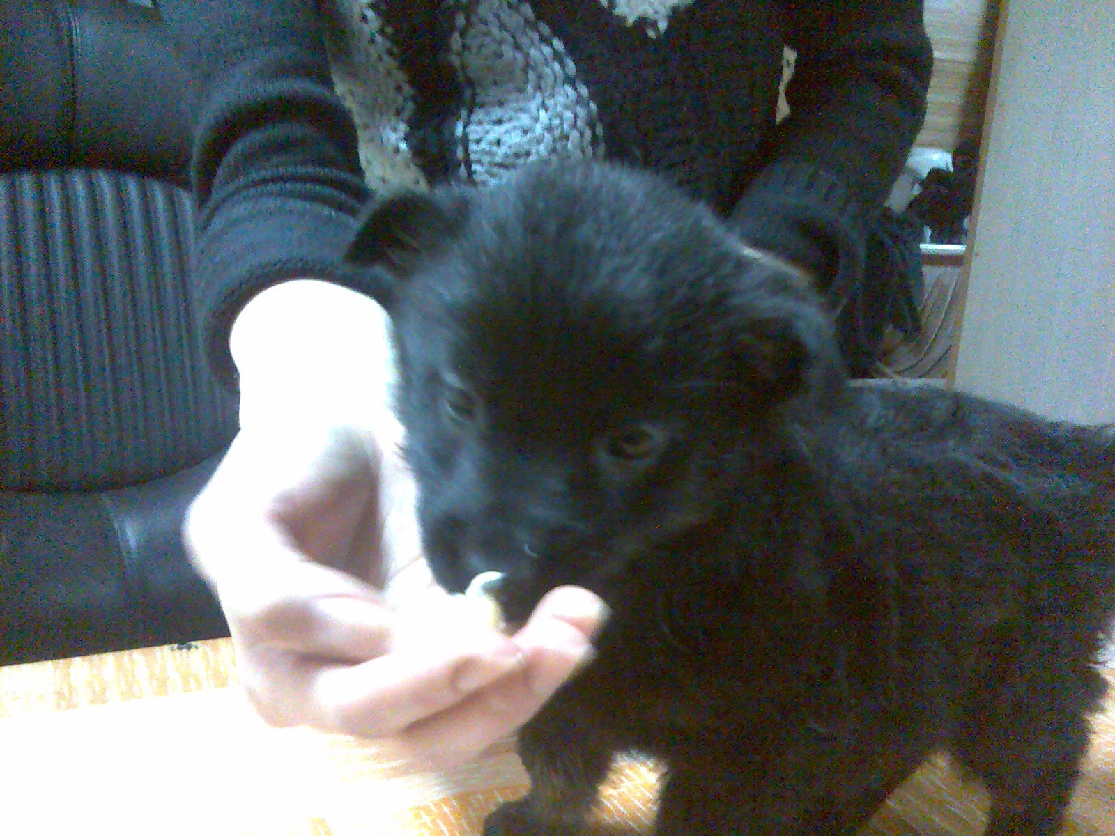 любит покушать и уже пытается гавкать на кошку.