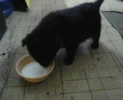 малявочка совсем без сил была, наверное долго путешествовала, так что когда я ее искупала и завернула в одеяло спала очень долго. Аппетит у малышки отличный, очень игривая и активная! Приютили ее временно на работе в тепле, возле обогревателя, правда местная кошка сильно возмущется присутствием нового жителя. Так что надеемся поскорее найти ей хозяина.
