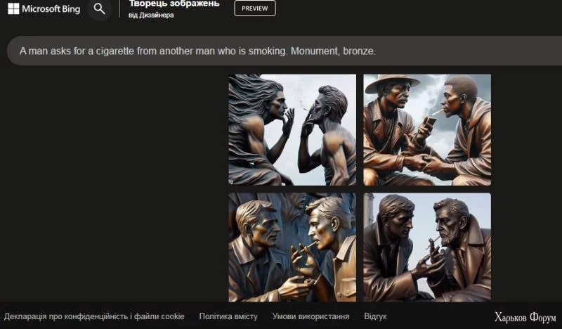 Bing перекладає запит і вже потім передає його DALL-E 3 англійською.